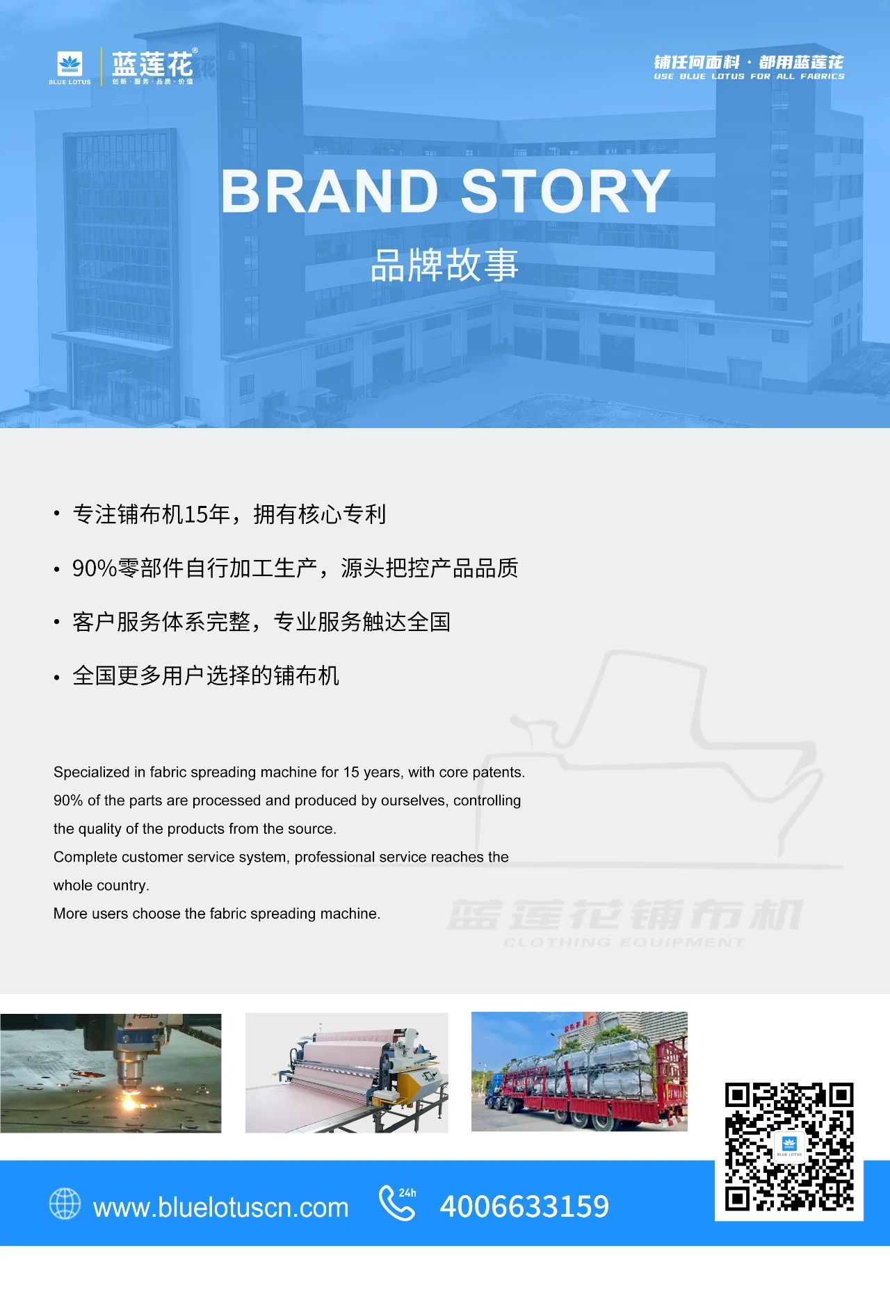 - 核心產(chǎn)品:主推產(chǎn)品的介紹,讓客戶能第一眼就看到藍(lán)蓮花鋪布機(jī)。