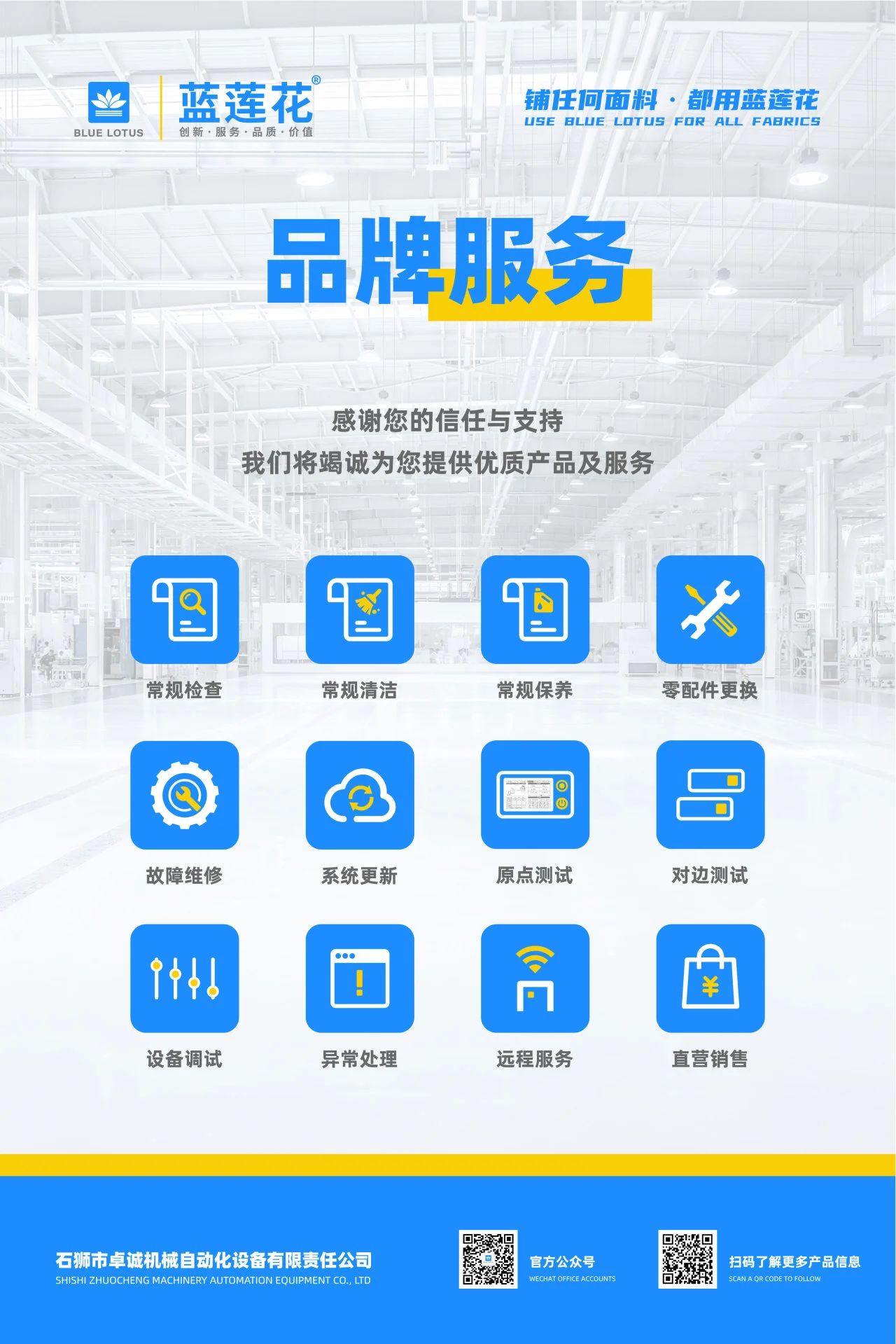 藍(lán)蓮花深耕鋪布機(jī)領(lǐng)域多年,致力“精工智造,賦能未來”。此次門店形象升級,不僅是視覺的統(tǒng)一,更是品牌內(nèi)核的延伸 。