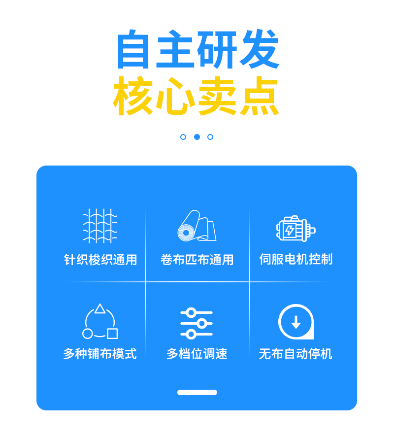 放布輪由步進驅(qū)動改成伺服驅(qū)動,控制更精準穩(wěn)定。主機采用伺服驅(qū)動,控制更精準、鋪布更平整且穩(wěn)定;失電制動器(剎車盤) 原本采用集成至電機里現(xiàn)改成外置主機驅(qū)動桿上,剎車性能更好,機器誤差變小。常規(guī)1205傳動改用同步帶,傳動效果更平穩(wěn)且噪音更低。